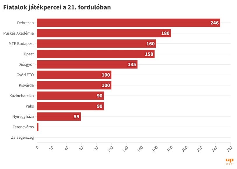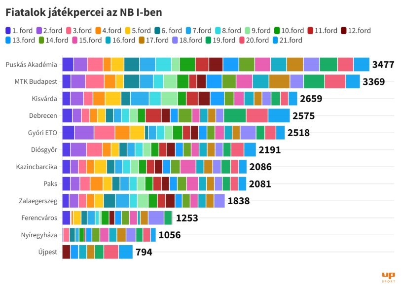 A labdarúgó NB I huszonegyedik fordulójában 1320 percet kaptak a 2005-ben vagy annál később született magyar játékosok. A Debrecen és a Puskás Akadémia adta a legtöbb lehetőséget a fiataloknak.
